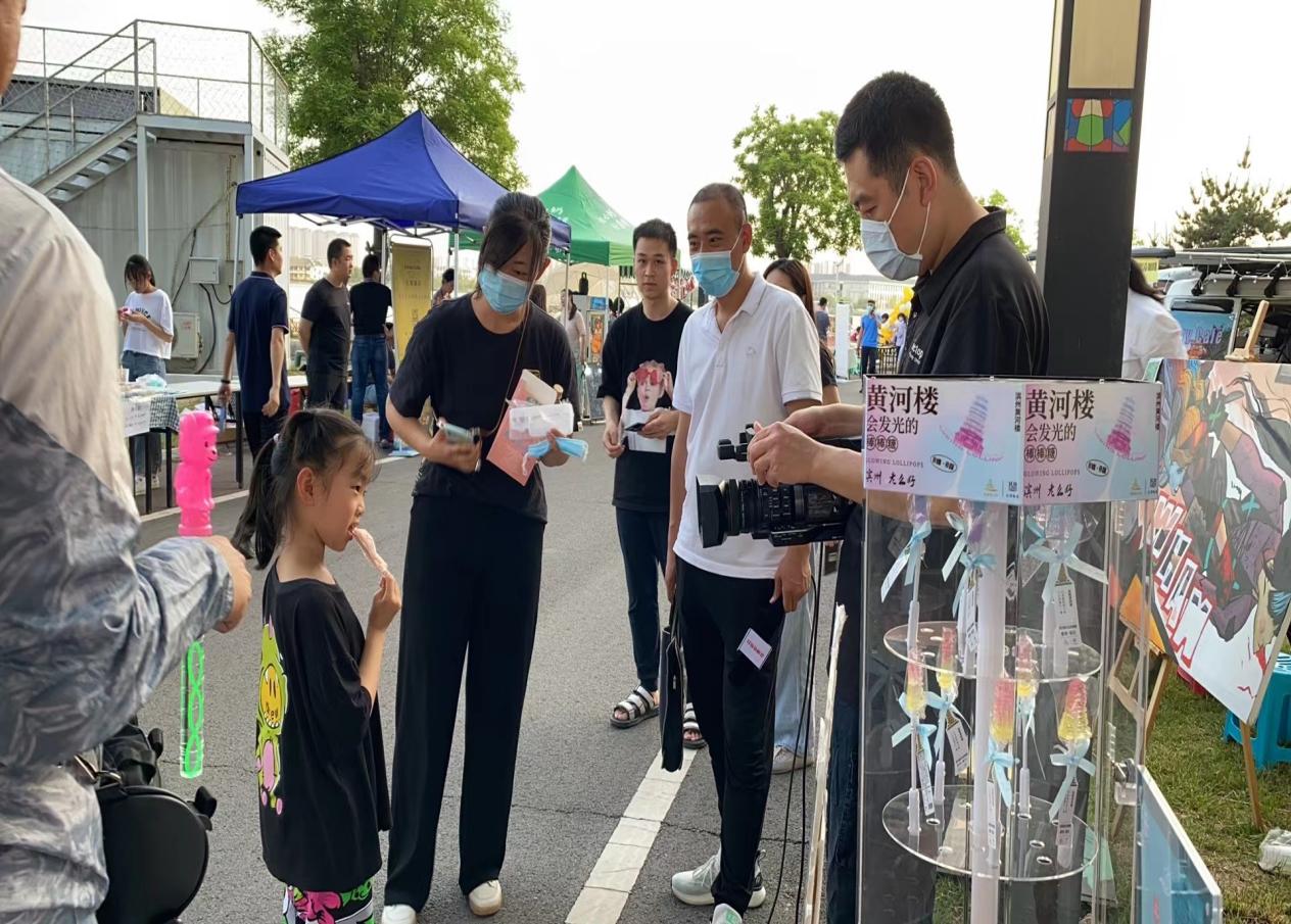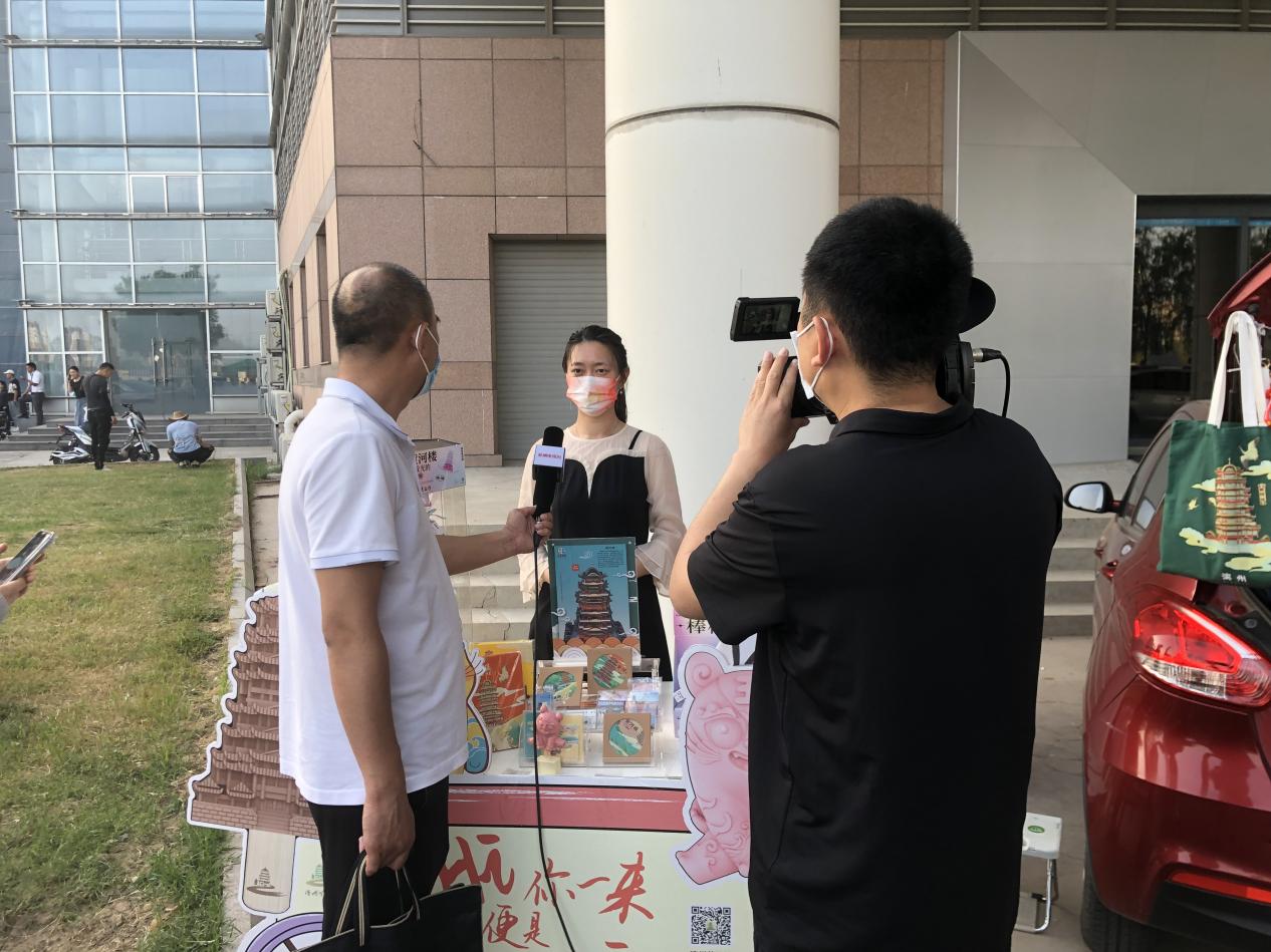 在熱鬧的市集中,濱盛景區(qū)的工作人員接受了濱州電視臺(tái)記者的采訪,向?yàn)I州市民介紹了黃河樓文創(chuàng)產(chǎn)品的形象塑造來源,通過以黃河樓樓身及濱州吉祥物“小虎濱濱”為原型,設(shè)計(jì)了雪糕、棒棒糖、便簽等一系列產(chǎn)品。目的在于與消費(fèi)者產(chǎn)生情感共鳴,喚醒消費(fèi)者內(nèi)心對(duì)黃河文化的固有情感,讓黃河文化的內(nèi)涵融入我們的日常生活。