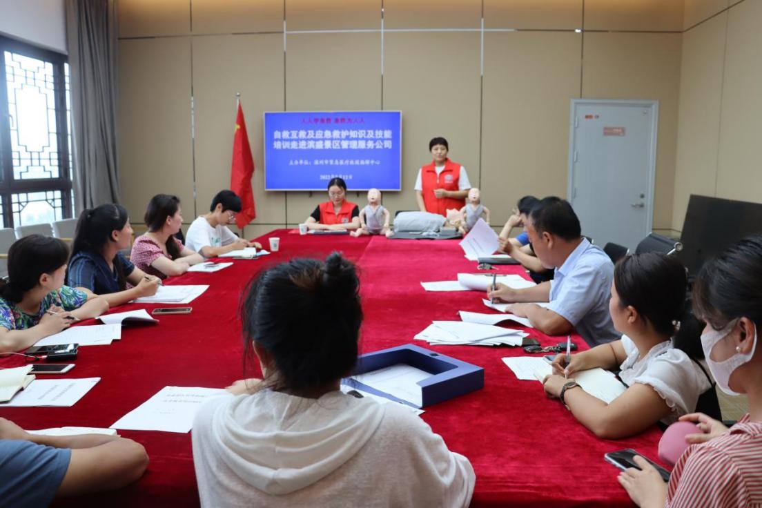 人員結(jié)合自身多年急救工作經(jīng)驗(yàn),深入淺出地講授了應(yīng)急救護(hù)的目的和原則、應(yīng)急救護(hù)的程序和注意事項(xiàng)等基本知識(shí),并圍繞心肺復(fù)蘇術(shù)、自動(dòng)體外除顫儀(AED)使用等緊急狀態(tài)下的救護(hù)知識(shí)和技能開展實(shí)操演練,取得了良好的效果。此次培訓(xùn)旨在普及員工應(yīng)急救護(hù)知識(shí),提升員工應(yīng)急救護(hù)意識(shí)和應(yīng)對(duì)突發(fā)情況的應(yīng)急救援及自救互救能力,對(duì)推動(dòng)景區(qū)公司安全發(fā)展起到積極作用。