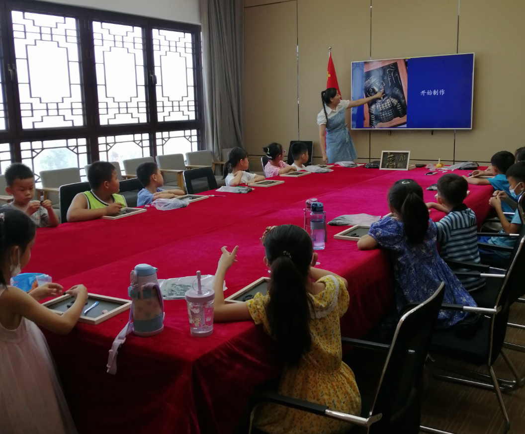 活動中,講解老師為孩子們介紹了黏土工藝的歷史和制作流程,帶領大家了解了秦始皇和兵馬俑的背景知識。孩子們在深入探尋黏土工藝歷史的同時,被一座座古老藝術品震撼,被一幅幅精美浮雕作品吸引,紛紛迫不及待、躍躍欲試。