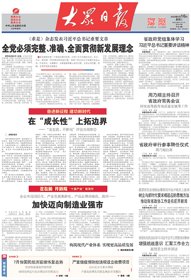 7月4日起,大眾日報及客戶端等全媒體平臺推出“走在前 開新局”大型主題報道,記者深入16市基層一線調(diào)研采訪,集中展現(xiàn)各地貫徹落實習近平總書記對山東工作的重要指示要求,錨定“走在前、開新局”,推進“三個十大”行動的創(chuàng)新舉措、進展成效,生動講述各地砥礪奮進、創(chuàng)新實干的鮮活事例,充分反映山東發(fā)展的新變化新氣象,以實際行動迎接黨的二十大勝利召開。今天刊發(fā)第三十八組報道:“十強產(chǎn)業(yè)”看濱州。