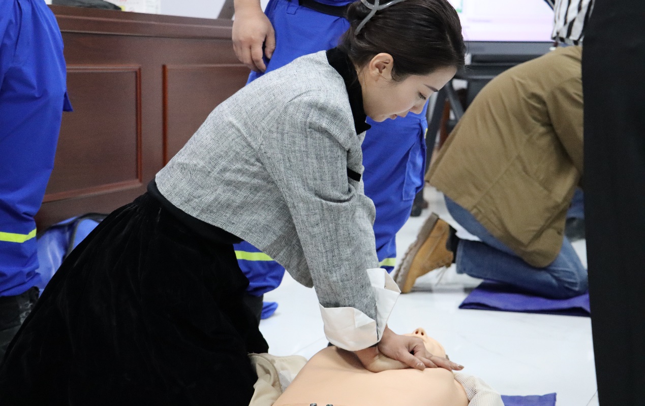授課結(jié)束之后,全體參訓(xùn)人員進(jìn)行現(xiàn)場實操練習(xí)。參訓(xùn)人員輪番上陣,以考促學(xué)、以學(xué)促實,借助教學(xué)模型,切實達(dá)到了學(xué)有所得,學(xué)有所獲,學(xué)有所用的預(yù)期效果,增強了對生命的尊重和敬畏,今后在緊急時刻,我們一定會運用這次所學(xué)的知識為他人、為社會多做貢獻(xiàn)。