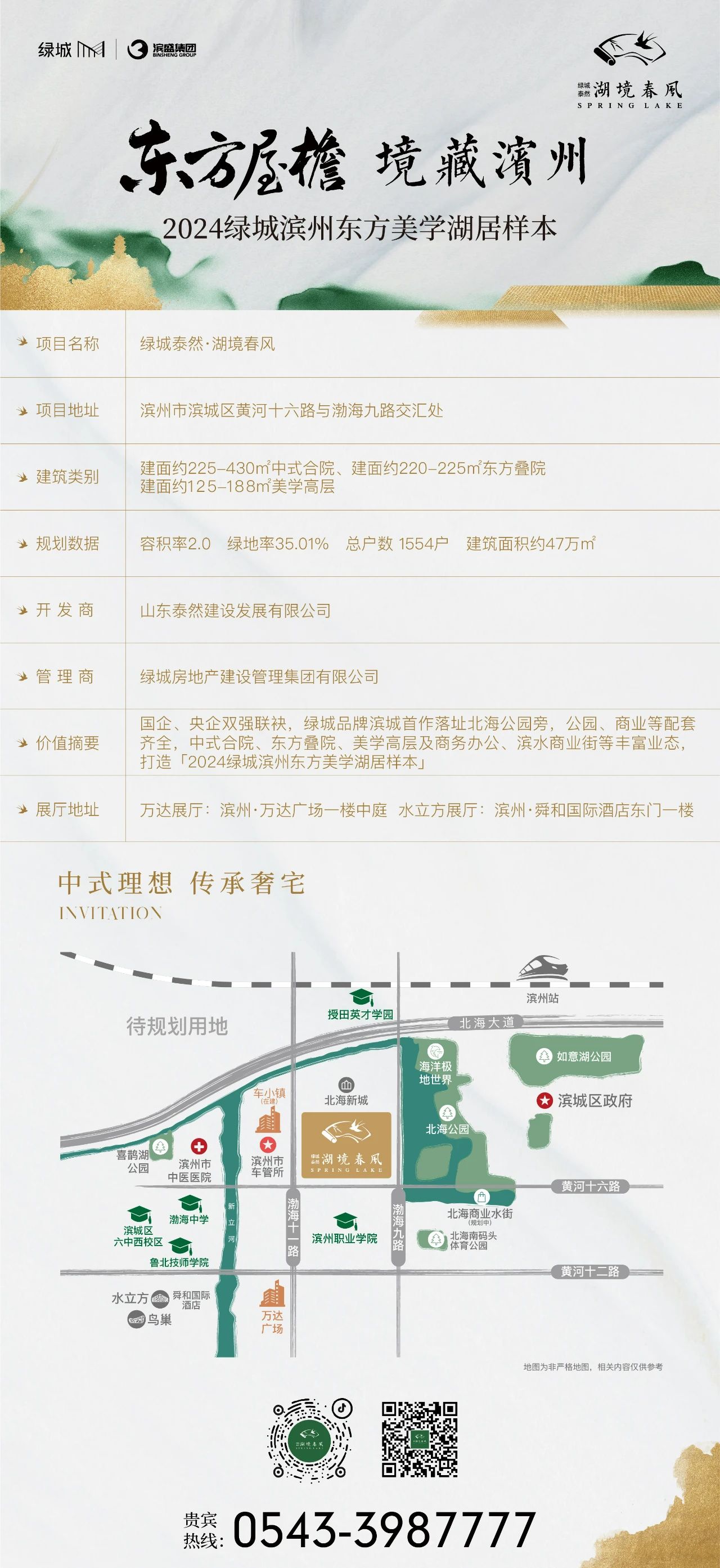 本宣傳資料所有文字、數(shù)據(jù)、圖片及所標(biāo)尺寸等僅為要約邀請(qǐng),不作為要約或承諾,相關(guān)內(nèi)容不排除因政府相關(guān)規(guī)劃、規(guī)定、出賣人分期規(guī)劃及其他原因而發(fā)生變化,一切有關(guān)本項(xiàng)目及房屋的具體信息及買賣雙方權(quán)利義務(wù)均以書面合同及政府最終審批文件為準(zhǔn)。項(xiàng)目學(xué)區(qū)及周邊學(xué)校的招生政策等相關(guān)情況,需由有購(gòu)房意向的業(yè)主自行向教育主管部門了解咨詢,最終以教育主管部門或相關(guān)政府部門答復(fù)意見或公開信息為準(zhǔn),開發(fā)商對(duì)此不作任何承諾,亦不承擔(dān)任何責(zé)任。本資料中的部分圖片/素材來源于網(wǎng)絡(luò),其著作權(quán)歸原作者所有,若原作者要求停止使用的,請(qǐng)及時(shí)與本公司聯(lián)系。本資料的發(fā)布時(shí)間為【2024】年【2】月,有效期【3】個(gè)月,本公司保留對(duì)本資料修改的權(quán)利且不再另行通知,敬請(qǐng)留意最新資料。本項(xiàng)目推廣案名為【綠城泰然·湖境春風(fēng)】,核準(zhǔn)地名為【湖境春風(fēng)】,開發(fā)商【山東泰然建設(shè)發(fā)展有限公司】,管理商【綠城房地產(chǎn)建設(shè)管理集團(tuán)有限公司】。