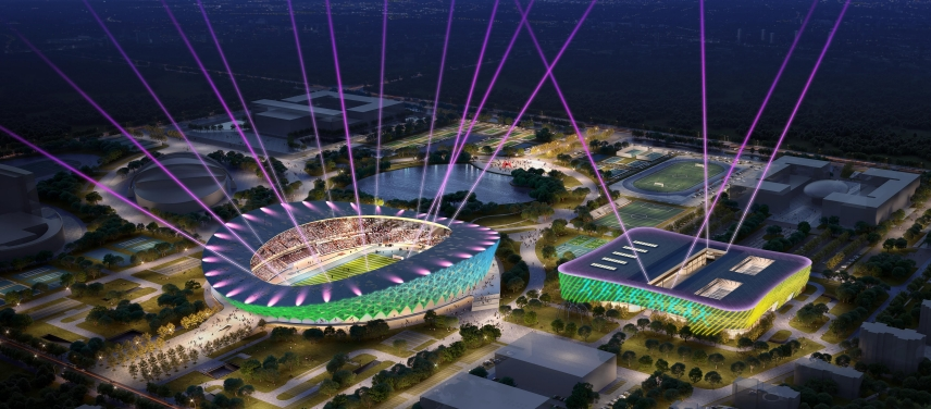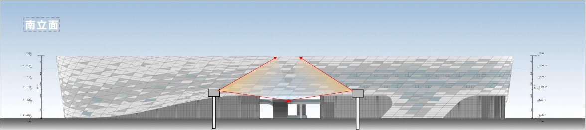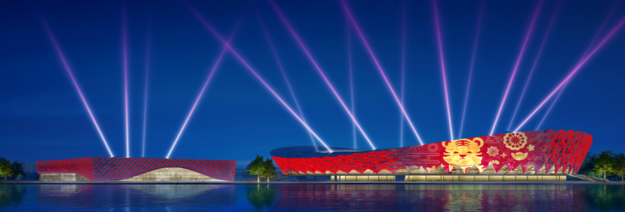 該項(xiàng)目設(shè)計(jì)上區(qū)別于傳統(tǒng)LED屏廣告模式,結(jié)合體育場(chǎng)建筑的外觀設(shè)計(jì)結(jié)構(gòu),在照明設(shè)計(jì)中突出建筑的結(jié)構(gòu)美學(xué)特征的同時(shí),重點(diǎn)突出投影視頻效果。設(shè)備上,采取了LED全彩點(diǎn)光源+高清戶外專用投影機(jī)與光束電腦燈相搭配的方案,為保證大屏效果,還添加了LED全彩投光燈+洗墻燈進(jìn)行效果補(bǔ)足;燈光效果上,作為一個(gè)城市的重要窗口和城市地標(biāo)來(lái)打造,亮化級(jí)別為必須亮化級(jí);基本采取智能化控制,可根據(jù)不同的需求隨意的調(diào)整燈光效果能夠滿足各類商業(yè)廣告投放需求;功能上,建筑所有立面點(diǎn)光源可以形成整體聯(lián)動(dòng),并呈現(xiàn)抽象畫(huà)圖形,讓建筑燈光有了不同的視覺(jué)感官。