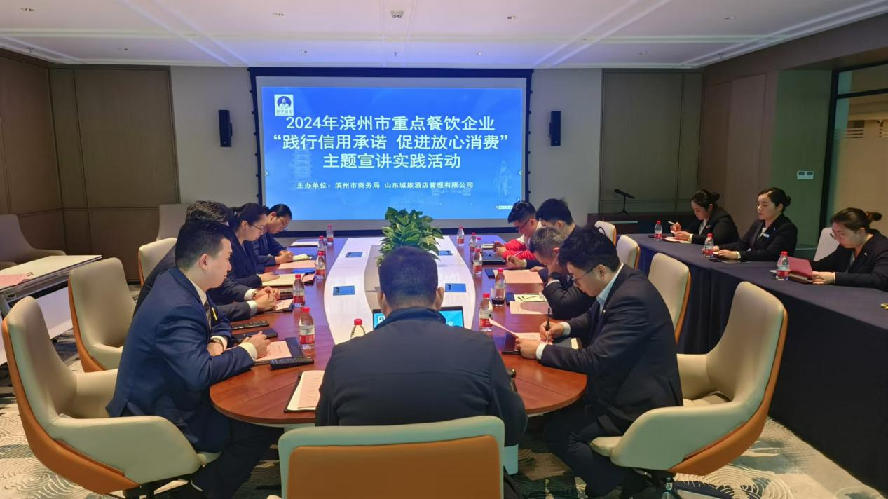 為推進社會誠信體系建設,提升誠信經營意識,落實酒店經營主體責任,營造安全放心的消費環(huán)境,保障消費者合法權益,11月12日上午,濱州市商務局在山東城旅酒店管理有限公司開展2024年濱州市重點餐飲企業(yè)“踐行信用承諾 促進放心消費”主題宣講實踐活動。