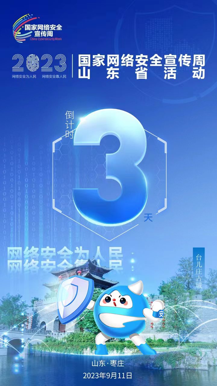 【網(wǎng)安濱州】距離2023年國家網(wǎng)絡安全宣傳周山東省活動啟幕還有3天